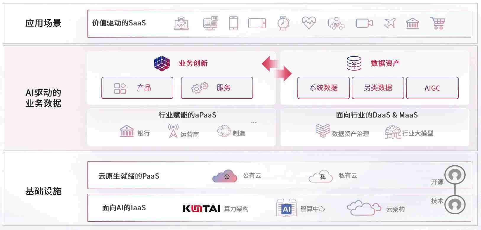数字时代,,,,围绕企业数字化转型的关键要素,,,,摩根娱乐数码开创性的提出数云融合战略和技术体系框架,,着力在云原生、、、、数字原生、、AI原生和信创产业上架构产品和服务能力,,,为处在不同数字化转型阶段的快消零售、、、、汽车、、金融、、医疗、、、政企、、、教育、、运营商等行业客户提供泛在的敏捷IT能力和融合的数据驱动能力,,,,构建跨界融合创新的数字业务场景和新业务模式,,,助力企业级客户建立面向未来的核心能力和竞争优势,,,,全面推动社会的数字化、、、、智能化转型升级。。。。